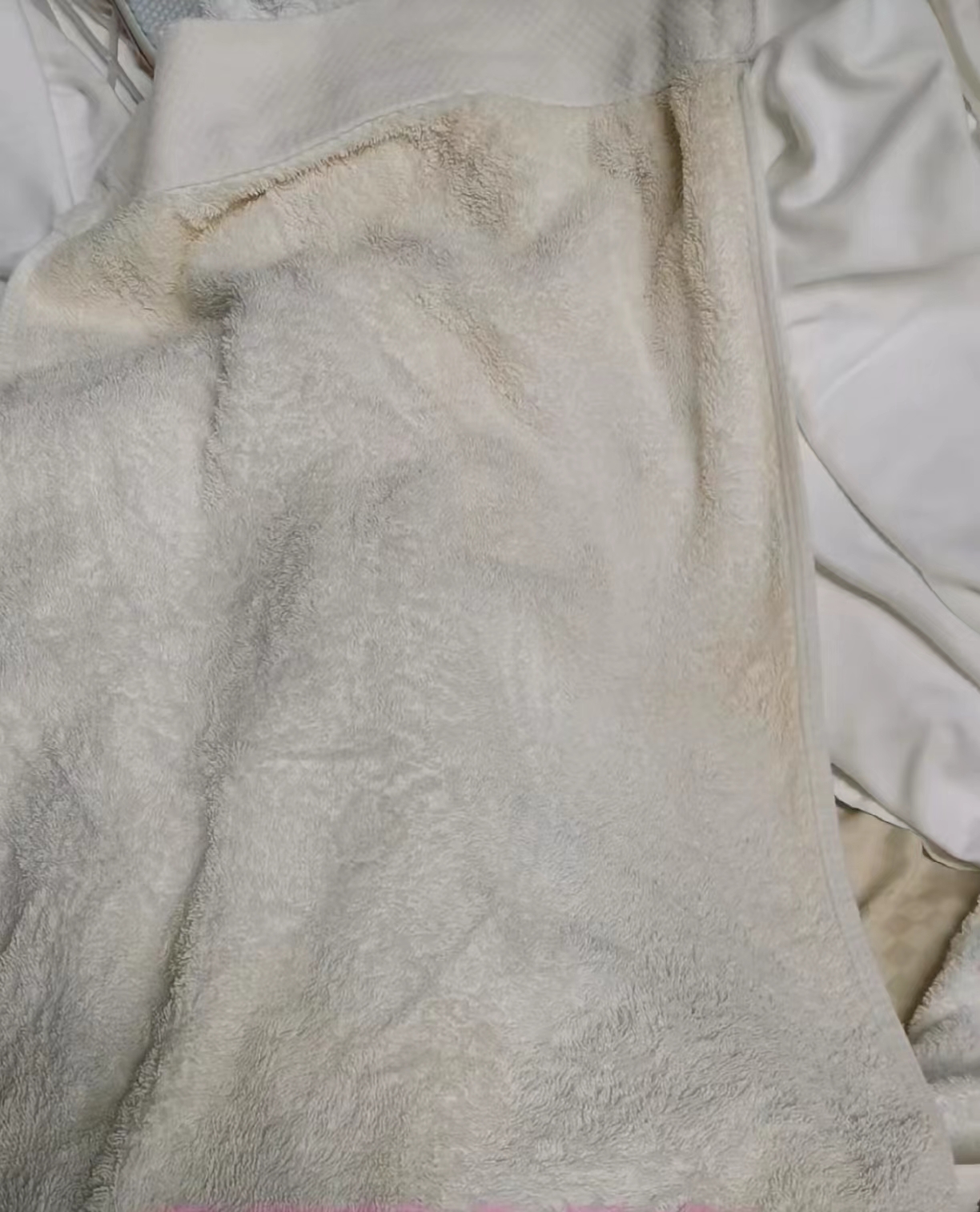 第1点,先打一盆热水放入中和酸,把发黄的布草在里面泡一泡,如果不是太严重的时候,很多时候基本上可以恢复原样了。