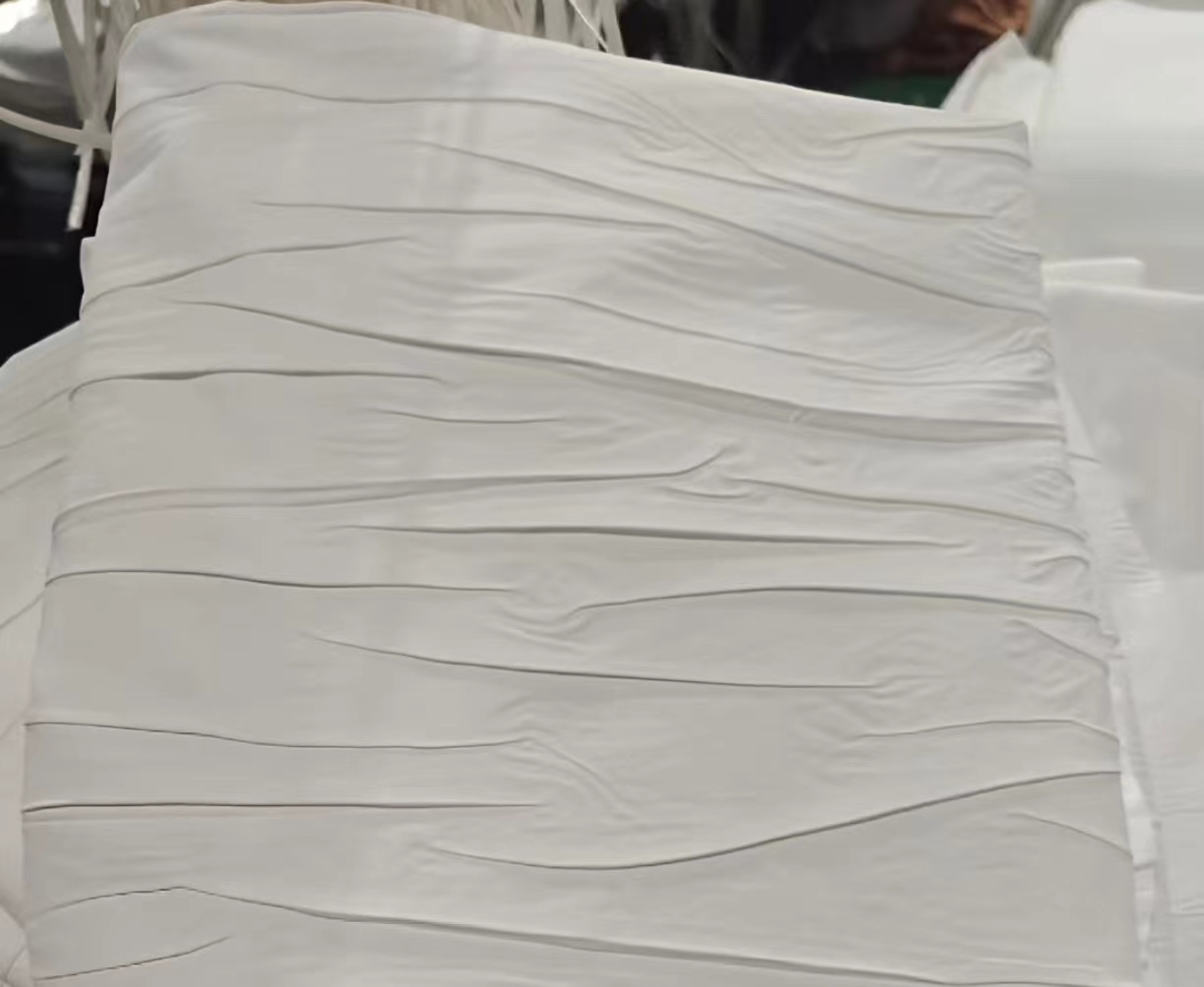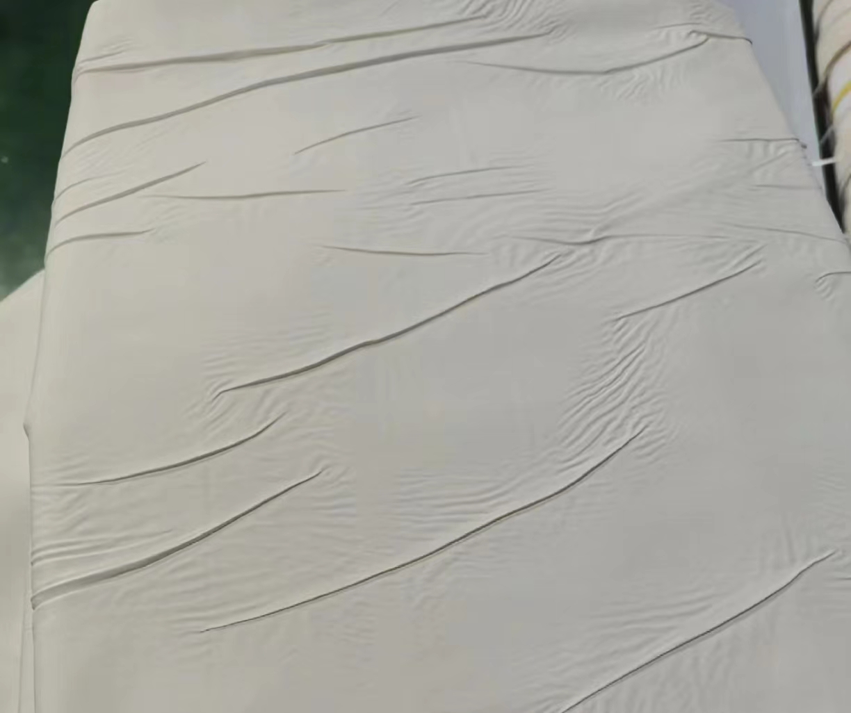 仔细看图片中,当你使用的高速烫平机熨烫出来的布草有这么多横向的死褶子,是什么原因造成的呢?该如何查找呢?