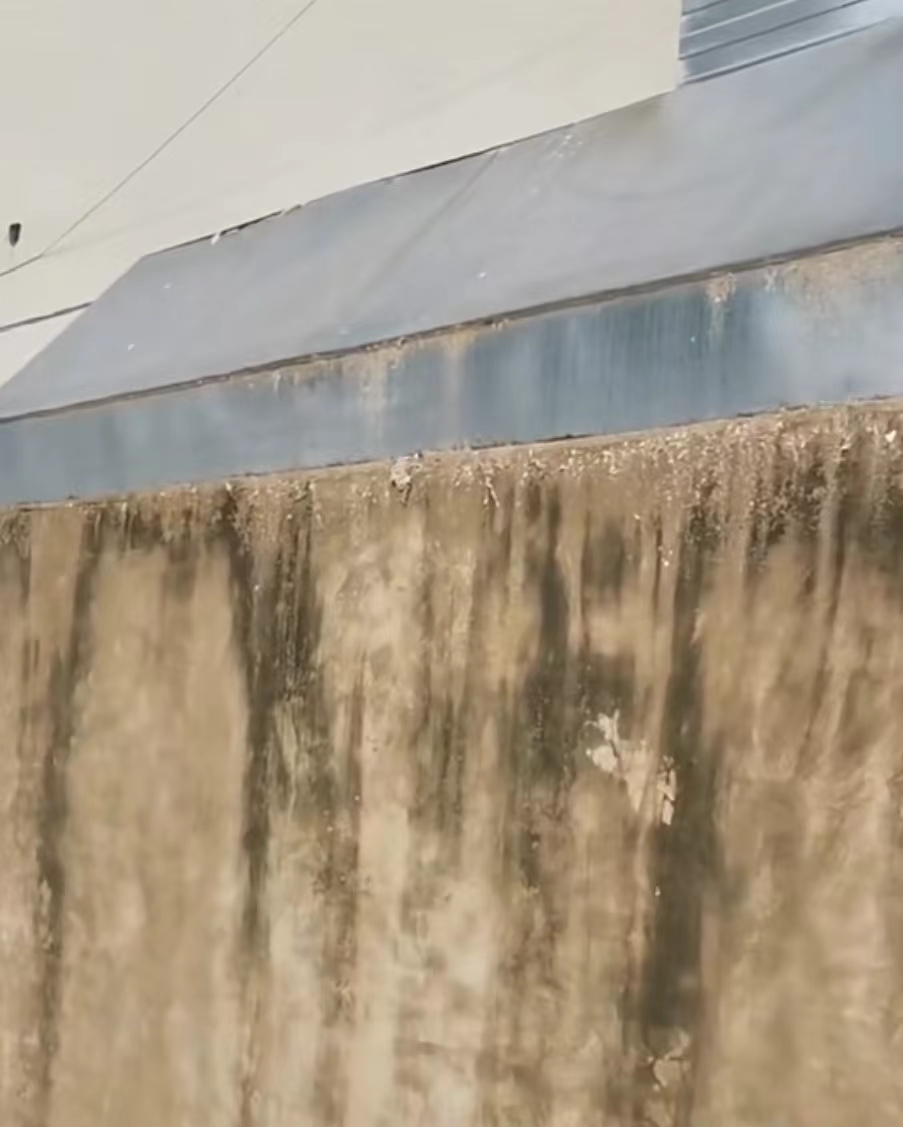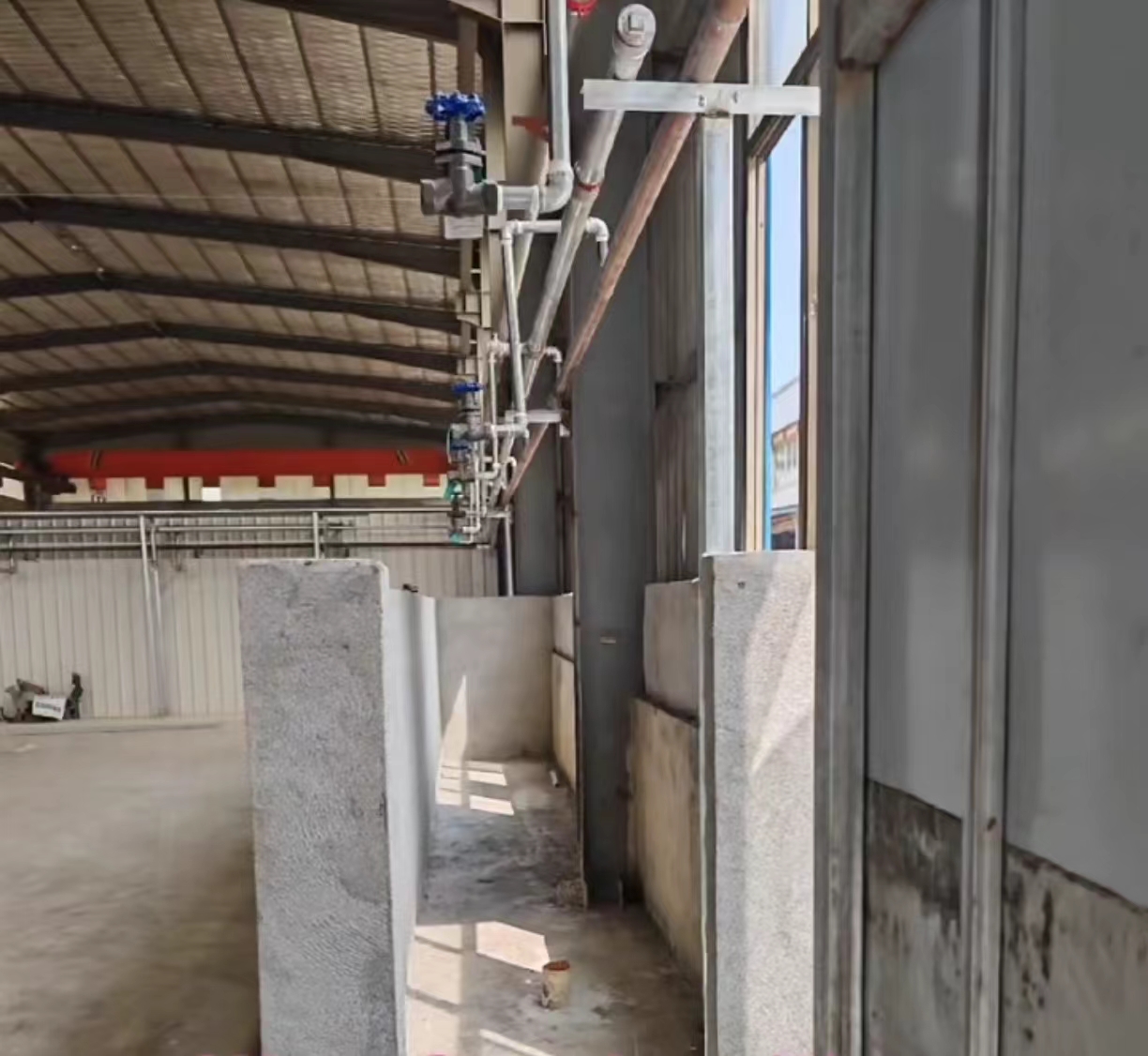 第2种是把通风管通到车间外面,在外面挖一个水槽,让风吹到水槽里面。这种使用情况是及时清理的话还可以,如果清理稍微不及时,上面的毛绒毛具就又会飞到外面的墙体上,造成到处都是白乎乎的。