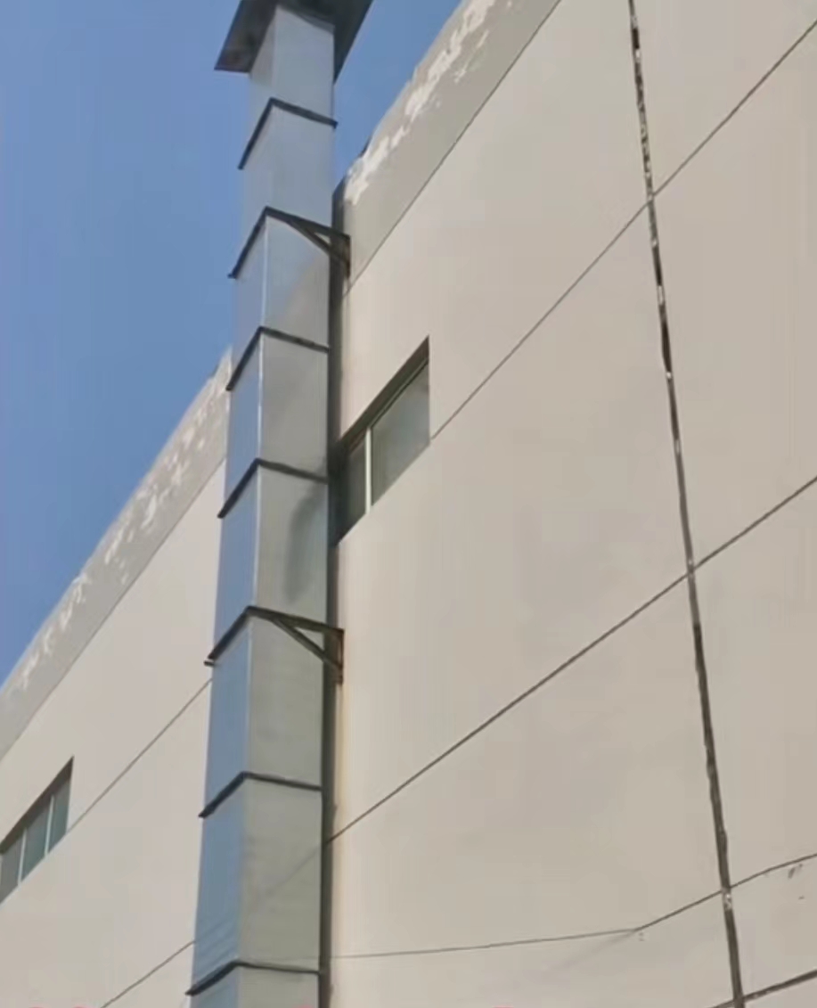 第1种,在车间内烘干机后面做一个方形的空间,装好过滤网,然后把风管引到外面。这种方法使用的结果是,热风还会散发到车间内,同时细小的灰尘还会落到车间内。